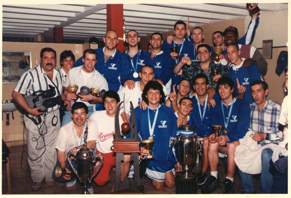 HISTORIA. Antes de que finalice el mes, y aprovechando esta foto publicada por Alejandro Rodríguez en el Face, bien vale recordar éste, el primer titulo argentino de mayores logrado por Chaco, un 18 de agosto de 1996. Con un “colado” incluido, y mucho pelo de mas, todo el equipo junto a los numerosos trofeos logrados. Esa noche Super Basquet le hizo a Raúl Bonnet -¡lo conocen, no?- la única nota que le habrán hecho hasta aquí en su larga, desinteresada y más que vital tarea dirigencial. Esa misma noche, en la soledad del gimnasio de Regatas -que momentos antes se colmaba como nunca antes ni después- SB entrevistaba a Marcelo Verri, el ultimo jugador en ser confirmado y que a la postre fuera vital para el logro. ¡Buenos tiempos! Cuando el Argentino aun era “el mas” de los campeonatos. ¡Salud campeones!
