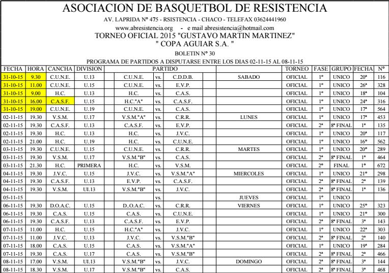 ASOCIACION DE BASQUETBOL DE RESISTENCIA. Programación de la ABR entre el 2 y el 8 de Noviembre.