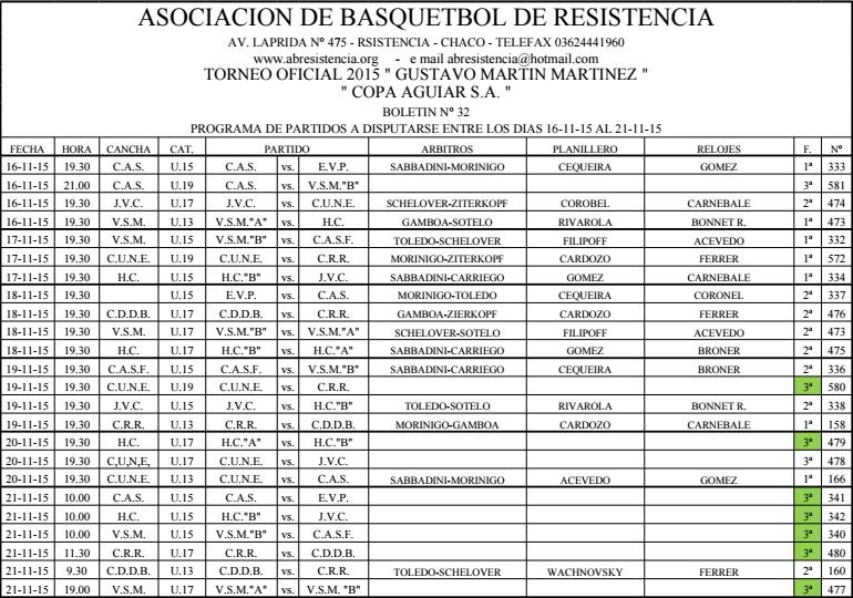 ASOCIACION DE BASQUETBOL DE RESISTENCIA. Programación de la ABR entre el 16 y el 21 de Noviembre.
