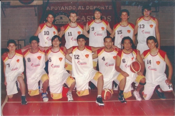 HISTORIA. Uno de los equipos “bien compensados” que supo armar Sarmiento en su “ultima” etapa en el marco del basquetbol local. Parados: Zibechi, Leopold, Carabajal, Sabadini y Yardin. Abajo: Caceres, García -¿hoy de cumple 33?- Bulacio, Escobar, Puchetta y Leónidas Psfetura y el juvenil Matias. Todos dirigidos por el polifuncional Salinas.