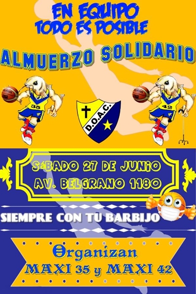 SOLIDARIDAD. Este sábado 27 de junio, se realizará un almuerzo solidario en las instalaciones del GIGANTE PORTUARIO, Avenida Belgrano 1180, destinado a las personas de escasos recursos de la zona. La organización está a cargo de los jugadores de básquet de las categorías Maxi 35 y Maxi 42 del club.