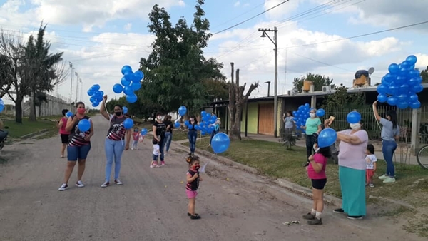 Los que participaron se acercaron a las 15.30 al lugar más cercano, llevando su papel escrito que se colocó en cada globo. “SI O SI BARBIJO O TAPABOCA Y MANTENER TODO EL TIEMPO DISTANCIA SOCIAL!!!” fue la consigna de los organizadores.