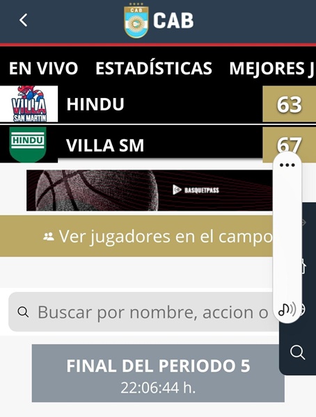 APLICACION. Nunca fuimos “fan” de la APP de la CAB que lleva los partidos. Pero lo sucedido ahora, colma cualquier “paciencia”. ¿ Que pasó-pasa? Aparece el logo de Villa con el nombre de Hindú (y su marcador, 63, al lado) y abajo, lo contrario: logo del Verde y nombre de Villa (67). SE INVOLUCIONO con ésta “contratación” y otras decisiones de la actual “dirigencia”.