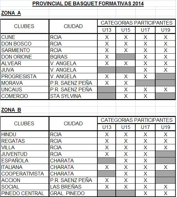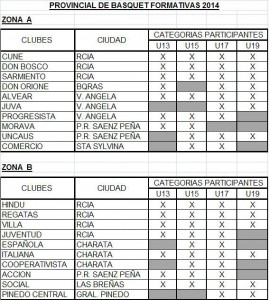 DIVISIONES FORMATIVAS. Un total de 63 equipos, que representarán a 20 clubes, se inscribieron para la edición 2014 del Provincial que, para las categorías formativas, organiza la Federación Chaqueña de Basquetbol. Como se sabe, el Provincial -que se inicia el próximo 8 de marzo- se juega en U13, U15, U17 y U19.