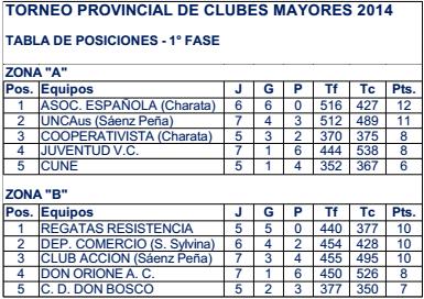 Así están las posiciones de ambas zonas del Torneo Provincial de Clubes en su primera fase….