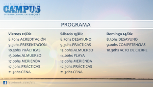 Se tiene previsto un completo e intenso programa de entrenamiento en jornadas de doble turno, desarrollándose los Fundamentos Técnicos Individuales y su aplicación en el juego Colectivo. Se tratará de mostrar las facetas y particularidades de las dos grandes escuelad del basquet del mundo. Todo ello acompañado con actividades de recreación en los tiempos libres.