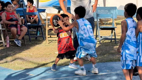 MINIBASQUETBOL. La foto que ilustra estas líneas muestra claramente lo que es el MINI. Nótese donde están los pies de quien va a sacar y los de quien lo marca. Inocencia pura como solo el Minibasquet fue capaz de desarrollar y promover hasta que aparecieron los “competitivos” con la idea genial que aún los U11 debían hacerlo. ¿Quién le dijo que por ahí era el camino? (Si es que en realidad están transitando alguno buscando ¿el mejoramiento? ¡Vamos! que por ahí no es. Dejemos que los niños sigan siéndolo aún con una naranja entre las manos y empecemos a buscar lo otro -la superación a través de la competencia- en otras edades.